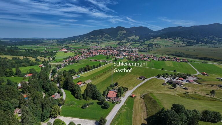 In märchenhaft schöner Lage am Fuße der Ammergauer Alpen liegt dieses malerische Ensemble, bestehend aus dem Gasthof Schleifmühle mit drei modern ausgebauter Appartements im Obergeschoss, großer Sonnenterrasse sowie liebevoll gestalteter Nebengebäude. Im Süden und Westen steigen die Ammergauer Alpen empor, ein Naturschauspiel zu jeder Jahreszeit.