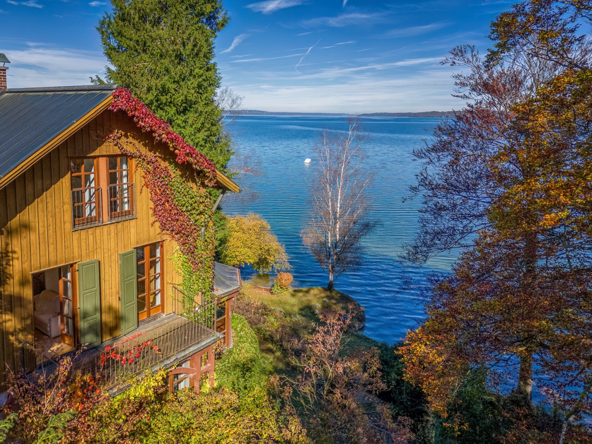 Eine imposante historische Villa unmittelbar am Seeufer in Seeshaupt am Starnberger See.