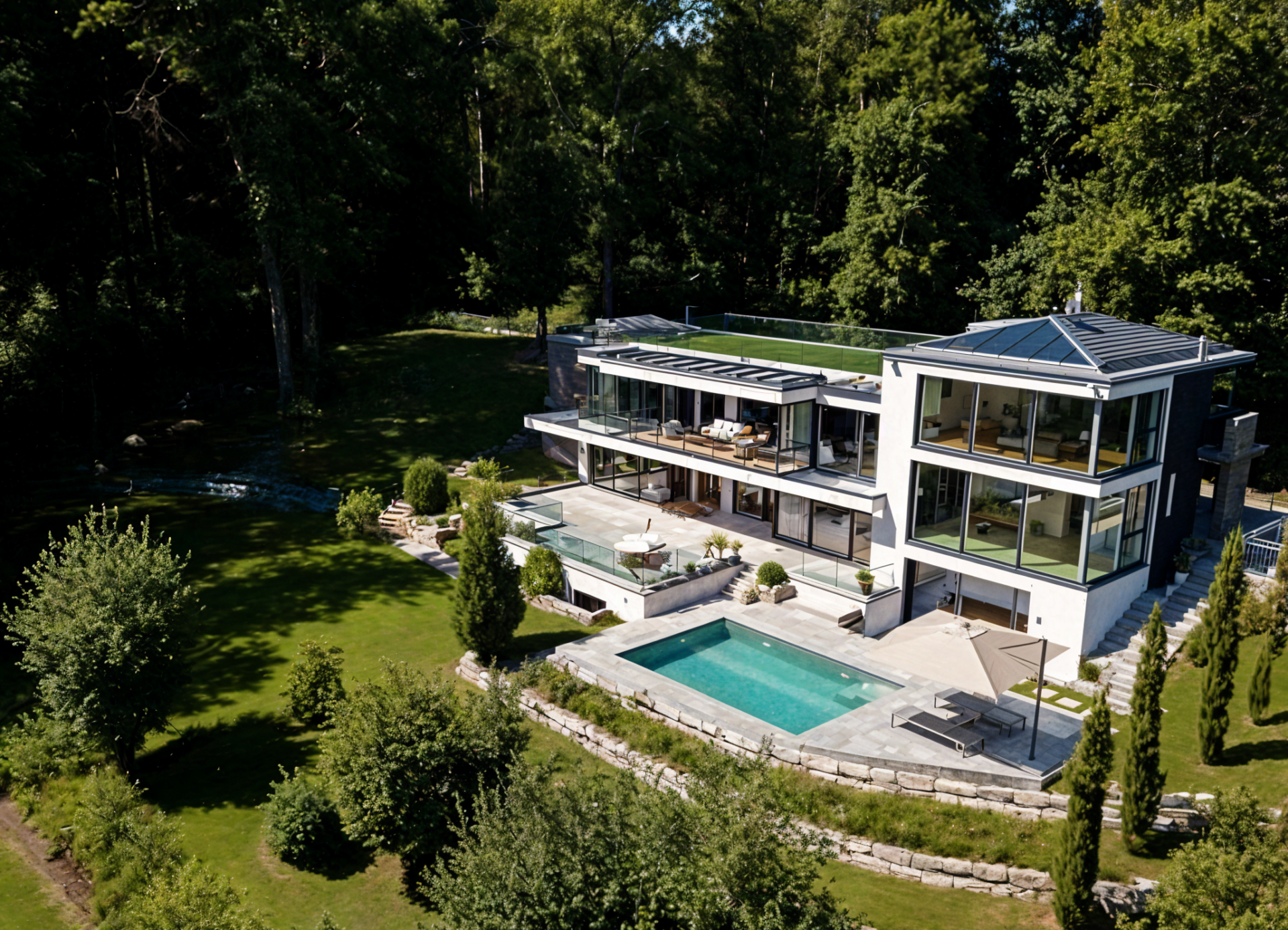 Eine der prominentesten Adressen Starnbergs. Im Süden der Kreisstadt. Am Westufer auf einer Anhöhe, ruhig und privat am Ende einer Sackgasse gelegen. Eine Prachtvilla in modern-elegantem Architekturstil. Über drei Ebenen imposante Glasfronten und Terrassen, konsequent zur Gartenlandschaft und zum Starnberger See ausgerichtet.